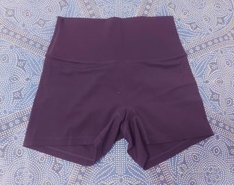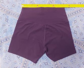 Pantaloncini a vita alta, il colore viola molto scuro, cortissimi, morbidi e aderenti, per nulla trasparenti, a prova di squat, comodissimi anche indossati senza intimo. Indossati per un solo allenamento. La taglia è M, il mio girofianchi è di 90cm nel punto più ampio, girovita 80cm, per me un po' stretti solo in vita ma ok.