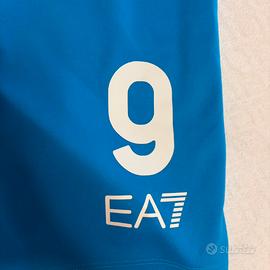 Pantaloncini ufficiali della SSC Napoli, realizzati dallo sponsor tecnico EA7 (Emporio Armani). Modello home nel classico colore azzurro, personalizzati con il numero 9. Dettagli del prodotto: • Squadra: SSC Napoli • Brand: EA7 • Taglia: L (Large) • Numero: 9 • Autenticità: Presente etichetta Certilogo per verificare l'originalità del prodotto (visibile in foto). Caratteristiche: • Logo Napoli in rilievo gommato di alta qualità. • Logo EA7 e numero stampati. • Tessuto tecnico traspirante, ideale per lo sport o per il tempo libero. • Girovita elasticizzato con laccetti interni regolabili.