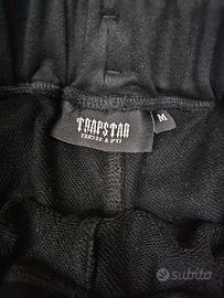 Pantaloncini Trapstar London neri in cotone felpato. Modello: Chenille Decoded / It's a Secret. Taglia: M. Condizioni: Ottime, tenuti con cura (vedi foto). Dettagli: Logo Trapstar ricamato in ciniglia con sfumatura dal bianco al blu, scritte ricamate, coulisse regolabile con punte in metallo. Made in Portugal.