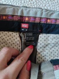 Pantaloncini uomo Diesel taglia 30 americana verdi con inserti in pelle, larghezza vita 40 cm.
