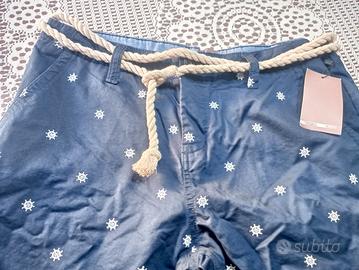 pantaloncini uomo estivi di colore blù con stampa di timoni e cinturino in corda ..mai indossati.