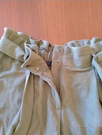 Pantaloncini corti verde salvia mai usati. Presentano gancetto in vita, zip e cintura. Taglia L. Materiale: viscosa e poliestere.