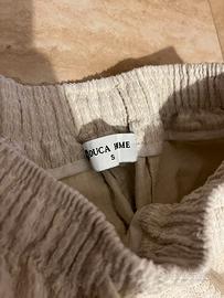 Pantaloncino corto estivo bermuda bianco panna con lacci lunghi Duca Homme Ricamato tessuto particolare Presenta tasche frontali con zip Taglia S Indossato due volte lacci lunghi bianchi Calza oversize Unisex uomo donna