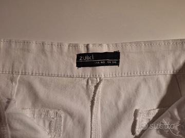 Questo pantaloncino bianco è minuto di una cintura beige, di una doppia chiusura, una a gancio e una a cerniera. È provvisto di tasche ampie e capienti. Il capo, per il suo tessuto, è adatto ad essere indossato sia d'estate sia durante le mezze stagioni, primavera e autunno, sia nelle situazioni più casual che quelle più eleganti. La taglia è una 40. Tutte le misure sono in foto