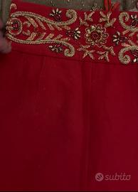 Pantaloncino rosso taglia 42 , alta moda, tutto fatto a mano compreso le pietre.mai usato