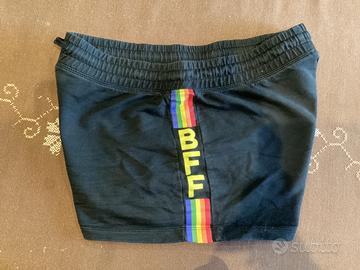 pantaloncino corto comodo e fresco, taglia anni 14+. colore nero con particolari laterali arcobaleno.