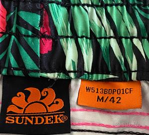 PANTALONCINO DA BAGNO DA DONNA - TG. M/42 - SUNDEK - COLORE BASE NERO CON FANTASIA HYBISCUS VERDE E FUCSIA - NUOVO SENZA CARTELLINO