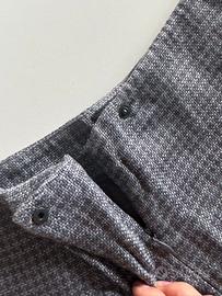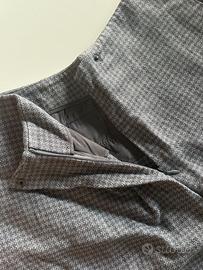 Come in foto, chiusura a bottone con zip. 3 tasche di cui una posteriore ( vedi foto ) e due laterali.