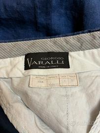 Pantalone vintage anni ‘80 100% Lino color blu notte, usati ma in buone condizioni, perfettamente indossabili; la taglia indicata 50 ma io credo sia più appropriata a una 48. Modello a vita alta con doppie pieghe in vita, marchio Giorgio Varalli, freschi e sfoderati, ideali per l’estate.