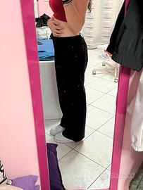pantalone elegante a palazzo di colore nero, di alcott, taglia eur 42 e ita 46, è presente una cintura in tessuto (da poter eventualmente rimuovere).