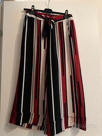 Pantalone a palazzo rigato bianco, nero e rosso, tessuto molto leggero in taglia unica