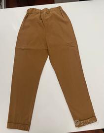 Pantalone colore tabacco, tg. XS, con elastico in vita, nuovo con etichetta, Acquamarina, Made in Italy, molto freschi in quanto di materiale Lyocell che è una fibra tessile artificiale di origine naturale estratta dalla cellulosa della pianta di eucalipto. Fa parte della famiglia delle viscose, ma possiamo considerarla una viscosa “solitamente” prodotta in modo ecologico (a basso impatto ambientale).