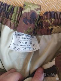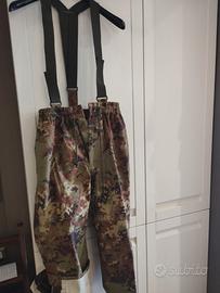 panta goretex impermeabile anti strappo policromo con elastico in vita e doppia apertura con bottone e streck vita e fondo gamba per facilitare l"uso con bretelle da indossare sopra adatto cacciare sport all"aperto ttre paia un 48 un 54 20€ al paio
