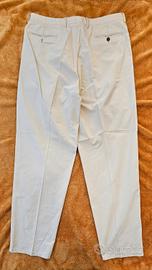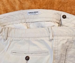 Calzoni estivi Armani in cotone, colore panna, con pence e due tasche avanti e retro, taglia 56.