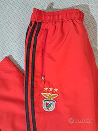 pantalone del benfica originale, marcato adidas, rosso con linee nere.