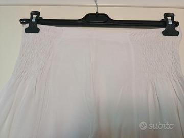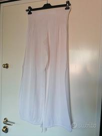 Pantalone bianco taglia unica con fascia elastica laterale e possibilità di chiudere l'orlo dei pantaloni con le cordine.