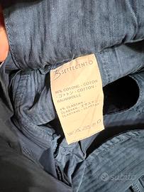 America diagonali e tasche posteriori a filo cucite giù portano il risvolto l'orlo e' originale non hanno subito pieghe in più hanno strigi vita con bottoni, le misure sono vita 44 cm lunghezza dall'interno coscia 84 cm cavallo