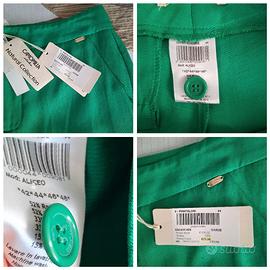 Colore verde brillante, vestibilità morbida, tessuto fresco, tasche foderate, dettaglio con brand color oro.