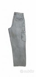 Pantalone cargo Bershka da uomo, colore grigio chiaro "effetto denim slavato", taglia 40 EU (USA 31, MEX 31), realizzato in cotone resistente (etichetta "Made in Bangladesh"). Modello straight fit, moderno e pratico, dotato di ampie tasche laterali cargo, cuciture a contrasto giallo/beige e dettagli robusti tipici del brand. Il pantalone è stato fotografato da tutte le angolazioni (fronte, retro e lati) e anche nei dettagli: etichetta, tasche, rifiniture. È in condizioni eccellenti: nessuna macchia, nessuno strappo, nessuna zona sbiadita. Ideale per look casual, streetwear, attività outdoor o viaggio. Materiale: 100% cotone robusto Taglia: 40 EU - 31 USA/MEX Lunghezza esterna: circa 108 cm Lunghezza interna (cavallo-fondo): circa 76 cm N.B.: In alcune foto sono presenti fiori e accessori (bracciali, decorazioni): questi NON sono inclusi nella vendita, sono solo elementi di scena per valorizzare lo stile; viene fornito solo il pantalone.