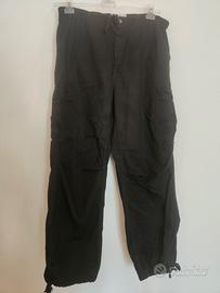 Indossato pochissimo, pantalone da uomo Bershka, di colore nero, con tasche laterali e lacci stringenti sul risvolto