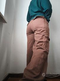 Comodissimi pantaloni cargo con tasche laterali e tasconi laterali. Lunghi 110cm, vita 42cm zampa larga, effetto vintage. 100% cotone