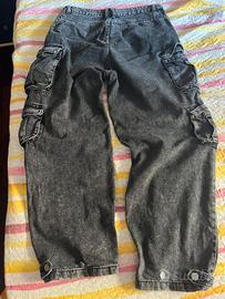 pantalone cargo nero, veste oversize, taglia M