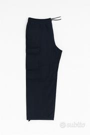 Pantalone cargo da uomo, colore nero/blu navy, resistente e comodo. Modello a gamba dritta, pratico e versatile, ideale per outfit casual, streetwear o attività all'aperto. È dotato di ampie tasche laterali cargo e cuciture robuste tipiche dei modelli utility.