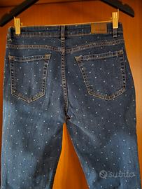 Pantaloni conbipel con pua , taglia M/44 . Quattro tasche chiusura con bottone e cerniera . Colore blu scuro. Nuovo mai usato