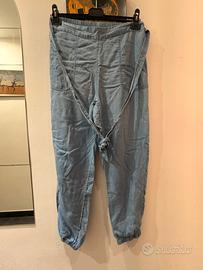 Pantalone Conbipel estivo, morbido e fresco, in fibra di origine naturale. Elastico e cinturino in vita, elastico sulle caviglie. Taglia 40.