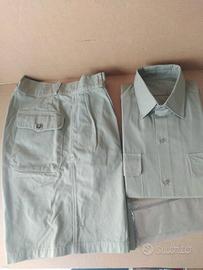 PANTALONE CORTO ESTIVO , CINTURA, CAMICIA CON COLLO DI RICAMBIO (MAI USATA), ZAINETTO MOLLE E BORSA AUC. TUTTO IN GRIGIOVERDE E.I. MISURE: PANTALONE: LUNGHEZZA 50 cm., GIROVITA 80 cm. CINTURA: 90 cm. CAMICIA: GIROCOLLO 38 cm, LUNGHEZZA MANICA 59 cm. ZAINETTO MOLLE BORSA A.U.C.. VENDIBILIBILI ANCHE SEPARATAMENTE.