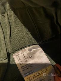 Il taglio a vita alta slancia la silhouette e mette in risalto il punto vita, mentre la tonalità verde militare dona carattere e si abbina facilmente sia a look casual con t-shirt e sneakers, sia a outfit più ricercati con top aderenti e sandali.