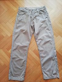 Pantalone in cotone leggero, taglio jeans, cerniera, bottoni e tasche perfetti. Color beige. Regular fit. Taglia 52 italiana. Made in italy.