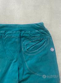 Il verde petrolio è profondo e molto bello dal vivo, diverso dai soliti colori neutri da palestra. È un pantalone pensato per scalare, ma funziona benissimo anche fuori, in un contesto outdoor o urbano con un’estetica forte e pulita.