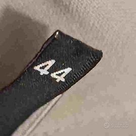 Pantalone da donna in tessuto di poliestere 53% lana 43% elestan 04% di colore beige il modello glamour di tendenza carrot con 2 tasche anteriori chiusura a bottoni con cintura in stoffa taglia 44. pnd185. Lunghezza (allungabile) 89 cm. giro vita 90.5 cm. lunghezza del cavallo 32 cm. larghezza dei fianchi 60 cm. lunghezza dell'interno gamba 57 cm. larghezza della caviglia 18 cm. In eccellenti condizioni. Made in Italy - Liviana Conti N.B. E' in vendita solo su TuttoSubito con i sistemi di pagamento e spedizione in esso presenti.