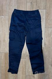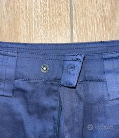 Pantalone da lavoro Kaama blu scuro TG M – rinforzato ginocchia – tasconi cargo Pantalone tecnico da lavoro marca Kaama, modello professionale conforme UNI EN ISO 13688:2022, ideale per lavori manuali (piastrellista, elettricista, officina, edilizia). Taglia M – vestibilità per: •Vita 80–84 cm •Altezza 170–176 cm Caratteristiche: •Colore blu scuro •Tessuto resistente: 79% cotone, 20% poliestere, 1% fibra antistatica •Vita elasticizzata per maggiore comfort •Tasche: •2 frontali classiche •2 posteriori con zip •2 ampi tasconi laterali stile cargo •Ginocchia rinforzate con predisposizione per inserimento ginocchiere •Chiusura fondo gamba regolabile con doppio strap (stringe bene alla caviglia) •Passanti robusti per cintura Condizioni: Buone condizioni generali. Presente un difetto: manca uno dei bottoni in vita (visibile in foto), facilmente riparabile con pochi euro. Misure indicative: •Lunghezza totale circa 105–106 cm (come da foto) •Vita circa 40–42 cm in piano Ideale per chi cerca un pantalone da lavoro robusto, pratico e con molte tasche. Disponibile alla trattativa Disponibile a inviare altre foto/info Eventuali difetti evidenziati nelle foto Non si accettano resi