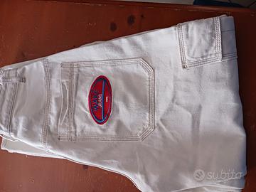 Pantalone di jeans bianchi lunghi, con tasche al ginocchio laterali da uomo