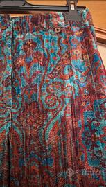 Bellissimo pantalone damasco in velluto elegante, con zip w bottone foderato tono su tono nella parte anteriore e elastico sul lato posteriore della via. Gamba dritta. Ampia vestibilità. Taglia S.