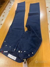 Pantalone donna in cotone chino stretch blu 5 tasche dettaglio toppa in camoscio gamba dritta taglia 40 italiana nuovo con etichetta Nicwave