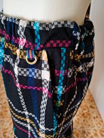 Pantaloni da donna con una fantasia a quadri vivace e colorata.