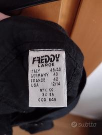 Pantalone Pinocchietto Freddy colore nero in fresco cotone con tasche e passanti in vita. Taglia 46/48