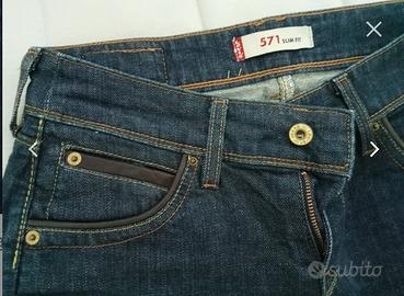 Pantalone originale della Levis donna, usato pochissimo dettagli in pelle sulle tasche, la taglia è visibile nelle foto. Per altre misure scrivetemi.