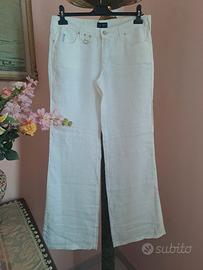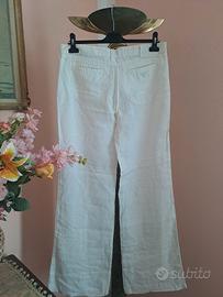 bellissimo pantalone donna gamba ampia in lino..colore bianco..TG.29..corrisponde a una 44..in perfette condizioni..come nuovi..di Armani jeans