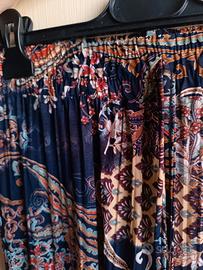 pantalone palazzo donna estivo, leggermente plissettato, estivo con stampa fantasia, elastico in vita, gamba lunga, tessuto molto leggero, taglia L/XL. vita 36, cavallo 35 nuovo con cartellino