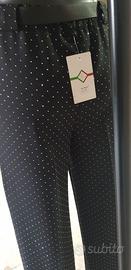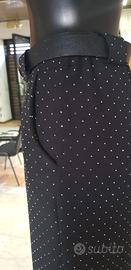 Per taglia errata, pantalone nuovo da donna, con etichetta, taglia S, nero con brillantini argento, completo di cintura, tasche e zip anteriore