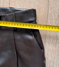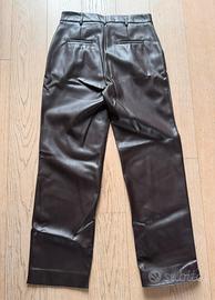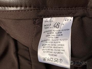 Pantaloni eleganti in ecopelle. Brand made in italy Skill & Genes Taglia 46 Vita alta. Gamba dritta. Tasche laterali. Chiusura con zip e bottone. Colore marrone Modello, condizioni e misure in foto