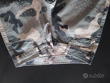 Pantalone in cotone taglia s stampa mitare con strasse lungo le gambe