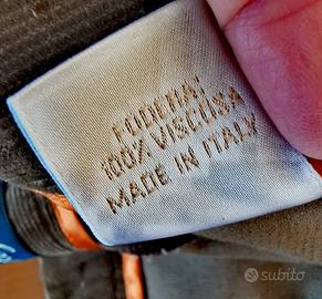 Pantaloni a vita alta con gamba regular. Questo modello, realizzato in velluto a coste tinto in capo, è caratterizzato da tasche anteriori diagonali e nessuna tasca sul retro. Completa il capo una chiusura con zip e gancio. Tg 42. Condizioni Ottime