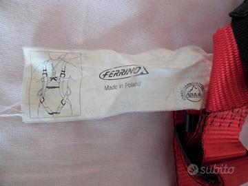 Imbrago completo Ferrino, completamente regolabile, omologato UIAA, usato un paio di volte, conservato in ambiente idoneo. Per il tempo trascorso non se ne consiglia l'uso per la pratica dell'alpinismo, vendo ad euro 10,00. Spese imballo e spedizione (da verificare al momento dell'acquisto) a carico dell'acquirente. Pagamento anticipato, spedizione tracciata.