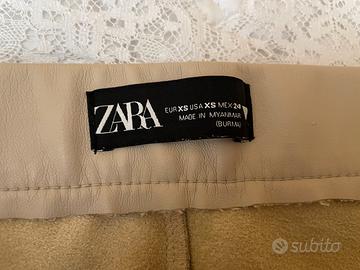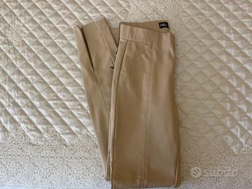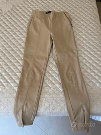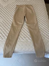 Pantalone in ecopelle color panna, con pelle scamosciata all'interno e zip sul davanti della gamba, taglia XS, buone condizioni.