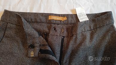 Pantalone elegante nuance grigia,con zip centrale, doppia abbottonatura, tasche laterali, tasche posteriori, misura cavallo - fondo pantalone 75 cm.